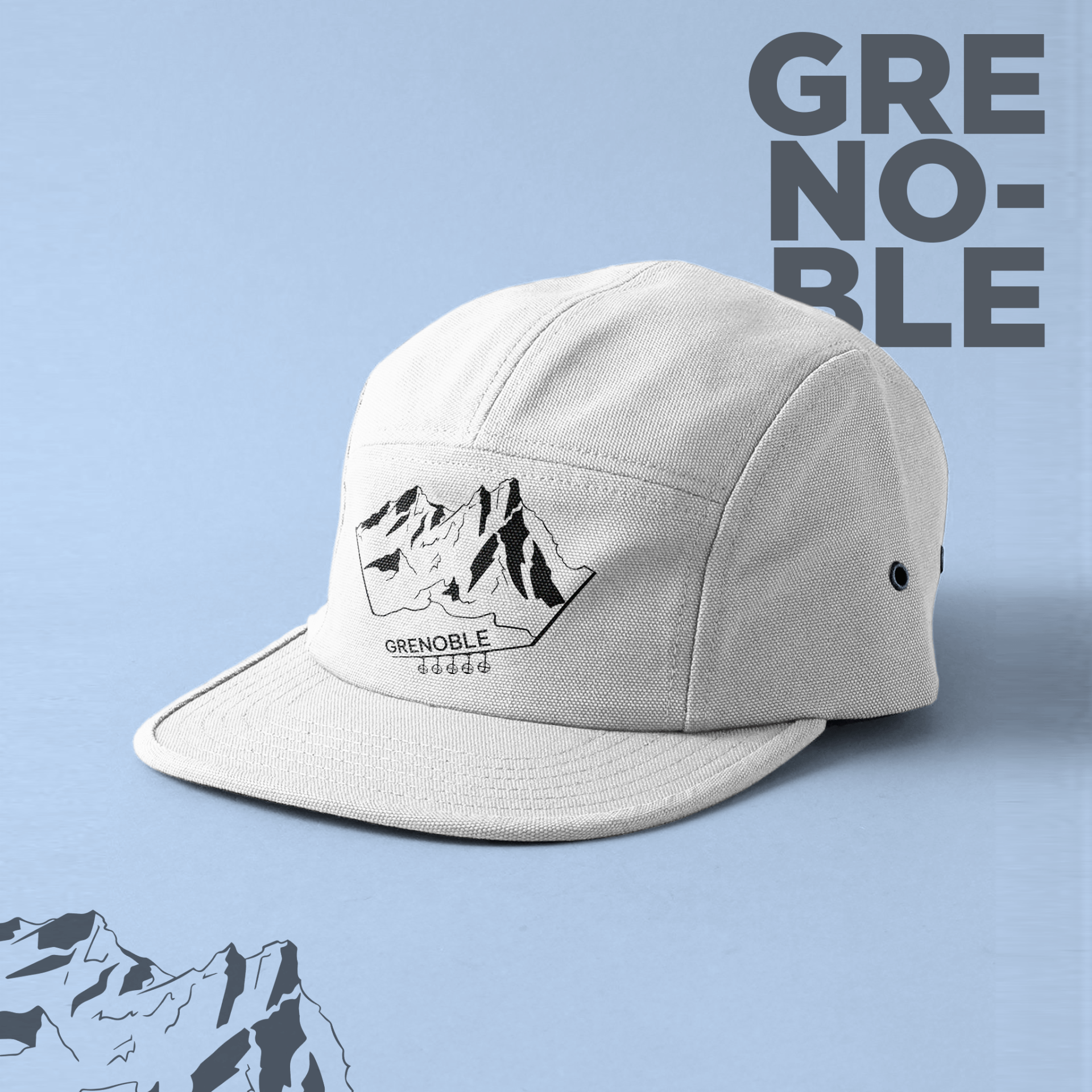 - Collection homme : représentation de deux des montages qui entourent la ville : Belledonne et le Taillefer. Illustration des bulles de la Bastille, symbole de Grenoble, le tout dans un design épuré en noir et blanc.