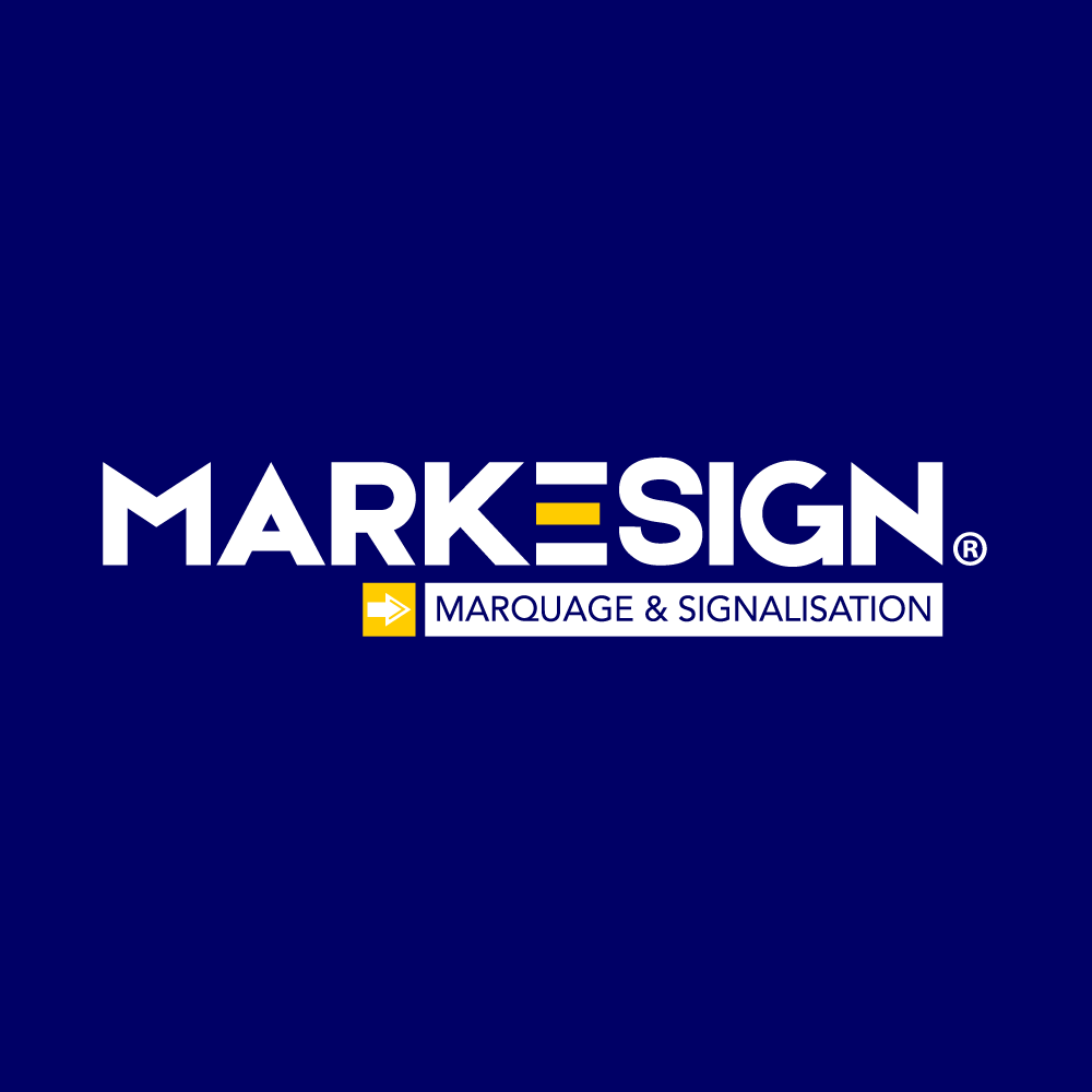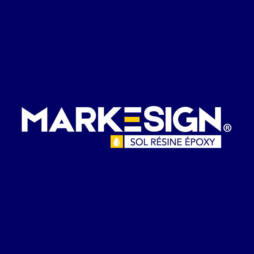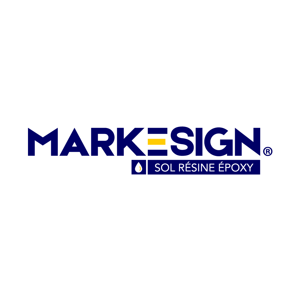 Modernité et originalité grâce à la lettre E de MARKESIGN qui représente à la fois le zébra du marquage au sol ainsi que l'horizontalité/ surface plane de la résine époxy.